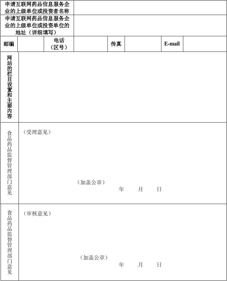 互聯(lián)網(wǎng)藥品信息服務(wù)申請(qǐng)表