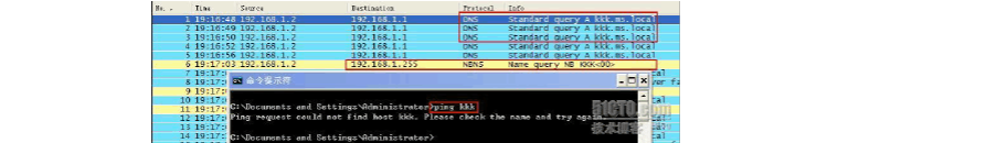 配置)發(fā)起解析請求,來查詢是否存在XP3.ms.local 這條記錄,經(jīng)過多次查詢后返回的結(jié)果如圖,結(jié)果是未能找到XP3主機。從這個實例我們可以看出,在名稱解析時,系統(tǒng)會自動加上之前已設(shè)置的主DNS 后綴,然后參與解析。當(dāng)在指定的DNS 服務(wù)器上找不到記錄時就會返回相應(yīng)的信息。反之,如果沒有配置DNS 服務(wù)器地址時,系統(tǒng)只能通過NBNS 服務(wù)器利用廣播方式進(jìn)行查找了,具體如何查找可以參考之前的WINS 系列。