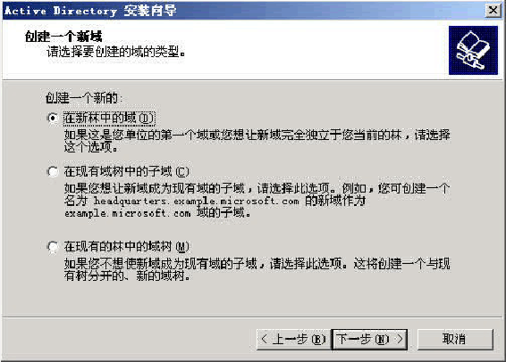 “這是一個權限的選擇項,在這里,我選擇第二項:“只與Windows 2000或Window 2003操作系統兼容的權限”,因為在我做實驗的整個環(huán)境里,并沒有Windows 2000以前的操作系統存在”