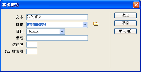 在左側(cè)表格“插入|常用|鏈接”,制作“我的首頁”超鏈接,在對話康中輸入相應(yīng)信息如圖9-16所示。同樣,制作“我的相冊”超鏈接,及“我的母?!背溄印2⒃O(shè)置中對齊。