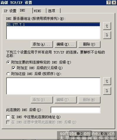 3. 最后是 在網(wǎng)上鄰居的本地連接中,點(diǎn)開外網(wǎng)卡的屬性,在tcp/ip的屬性---高級中,將 DNS 中的“在DNS 中注冊此鏈接的地址”前面的勾取消掉。