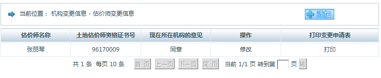 此時估價師變更的添加是從一個機構(gòu)變更到另一個機構(gòu),此估價師必須存在于當前系統(tǒng)內(nèi)的。估價師的變更申請必須由估價師現(xiàn)所在機構(gòu)來申請。審核通過后才生效。如果沒有的變更就可以不需操作。