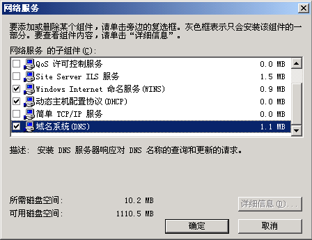 (3)在圖9中的網(wǎng)絡(luò)服務(wù)的子組件列表中,選擇“域名服務(wù)系統(tǒng)(DNS )”項,單擊“確定”按鈕,運行Windows 組件向?qū)Ш?,單?“完成”按鈕,結(jié)束安裝。