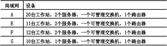 由器3和路由器4它們分別有兩個(gè)局域網(wǎng)接口。表1中給出了局域網(wǎng)A 、E 、F 和G 中的設(shè)備情況,假設(shè)該公司從ISP 獲得一C 類網(wǎng)絡(luò)地址196.168.20.0,