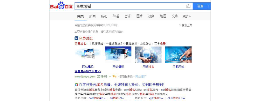 一、打開瀏覽器,進(jìn)入搜索引擎,查找關(guān)鍵詞“免費(fèi)域名”,一般情況下直接點(diǎn)擊搜索結(jié)果中的第一個(gè),就可以直接進(jìn)入免費(fèi)域名的注冊(cè)網(wǎng)站。