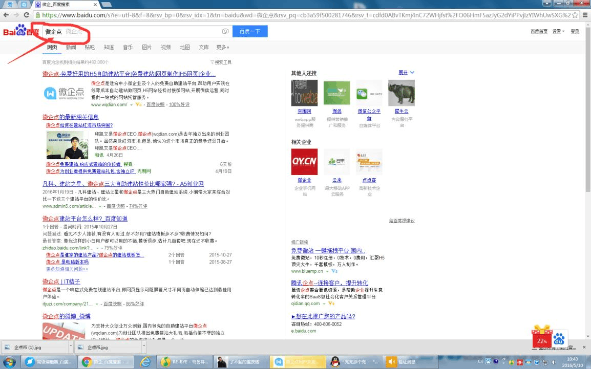 首先,我們打開我們的瀏覽器(建議最好是谷歌)。然后在我們的百度搜索中輸入微企點