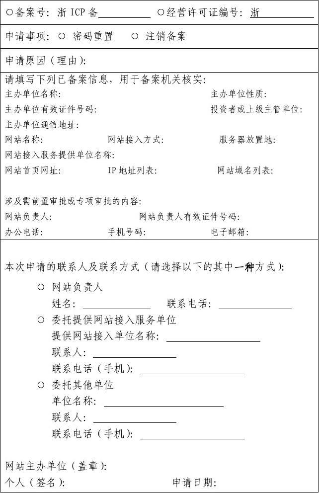 網(wǎng)站備案密碼重置和備案注銷申請(qǐng)表