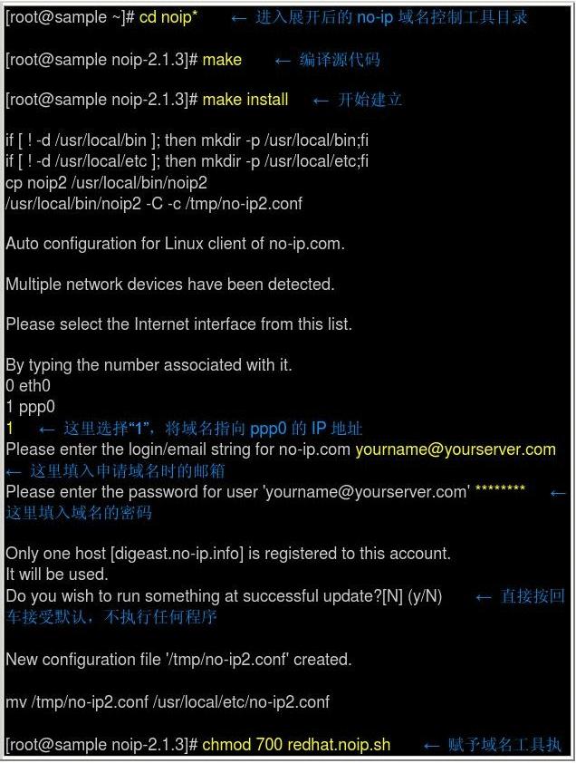 [1] 以root 用戶登錄服務(wù)器,下載no-ip 域名控制工具。
