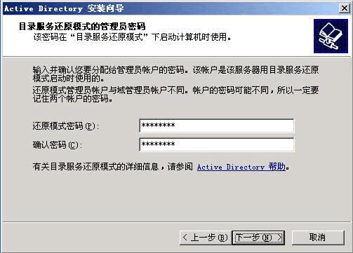 這里是一個重點,還原密碼,希望大家設(shè)置好以后一定要記住這個密碼,千萬別忘記了,因為在后面的關(guān)于活動目錄恢復(fù)的文章上要用到這個密碼的。