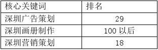 此處因篇幅有限,不逐一對網(wǎng)站中涉及的所有關(guān)鍵詞進(jìn)行分析。結(jié)合公司網(wǎng)站主要業(yè)務(wù),和相對更為精確能帶來轉(zhuǎn)化的三個核心詞,做代表進(jìn)行分析。選取廣告策劃、畫冊制作,深圳營銷策劃三個核心詞,在百度中的排名進(jìn)行分析。
