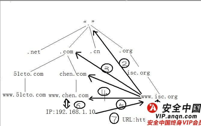 如果在chen.com 域中直接查詢www.chen.com ,查詢結(jié)果將直接輸出。如果在www.isc.org 服務(wù)器查找www.chen.com ,對于一個毫不相關(guān)的www.chen.com DNS服務(wù)名稱,首先將客服端請求發(fā)送到根域,再查到二級域.com, 最后查詢到管www.chen.com 的域名chen.com. ,在由chen.com 查找是否有注冊的www.chen.com ,最后將結(jié)果返回到www.isc.org 服務(wù)器再輸出客戶端。