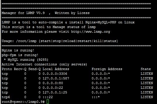 LNMP 狀態(tài)管理: /root/lnmp {start|stop|reload|restart|kill|status}