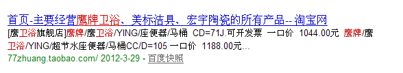 在我們確定好網(wǎng)站關(guān)鍵字之后我們要分析這些關(guān)鍵字的競爭對手網(wǎng)站,這里以百度搜索引擎優(yōu)化為例,關(guān)鍵字以鷹牌衛(wèi)浴為例: