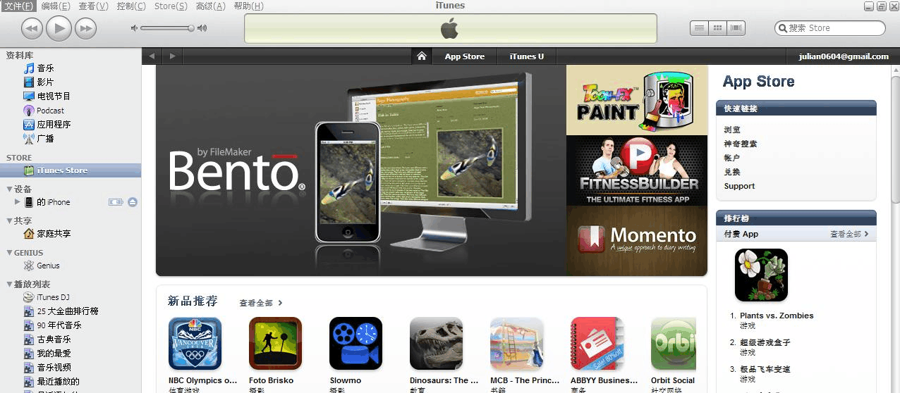 1) 首先,在PC 上安裝iTunes, 將IPhone 連接到PC 上,打開iTunes ,點(diǎn)擊iTunes Store