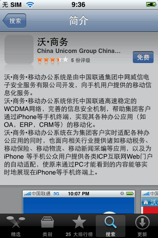 注意:“沃?商務(wù)”是我們需要下載安裝的,有一個(gè)很類似的應(yīng)用“沃-商務(wù)”,切忌不要混淆。