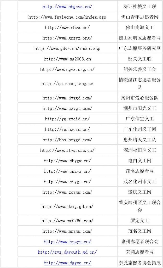 全國(guó)志愿者(義工)組織網(wǎng)站大全之華南篇(09.5.27更新)