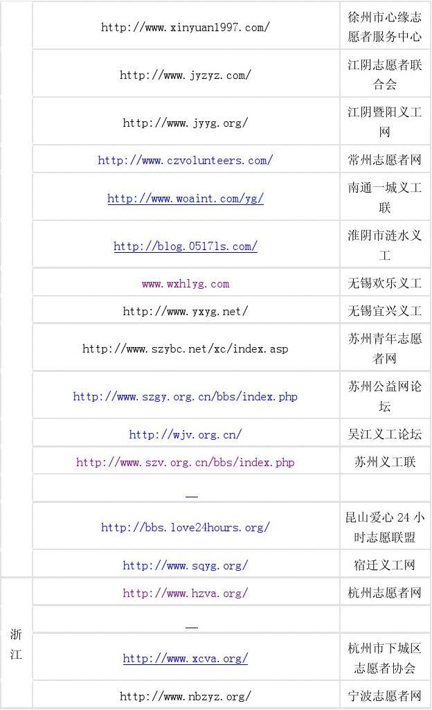 全國(guó)志愿者(義工)組織網(wǎng)站大全之東南篇