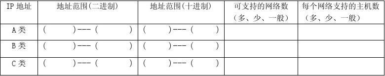 請(qǐng)根據(jù)上圖分別計(jì)算出A B C三類IP 地址第一個(gè)字節(jié)(1字節(jié)=8位) 的范圍(注意:00000000和011111111為特殊用途的地址, 不屬于任何一類)