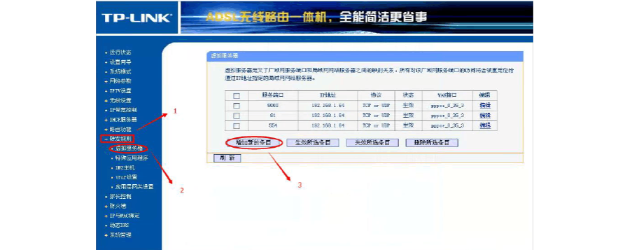 2.2 點(diǎn)擊“轉(zhuǎn)發(fā)規(guī)則”---“虛擬服務(wù)器”---“增加新條目”