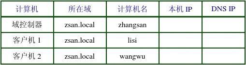 域規(guī)劃:建立一個單域的網(wǎng)絡(luò),其中有一臺域控制器和兩臺客戶機。
