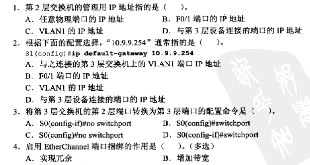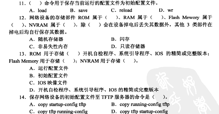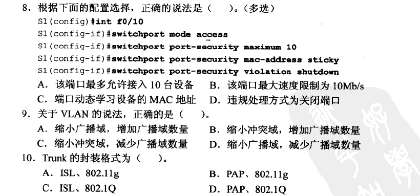 *12.將交換機(jī)的某一端口指定給某一個(gè)局域網(wǎng),配置時(shí)在(D )模式下進(jìn)行。
