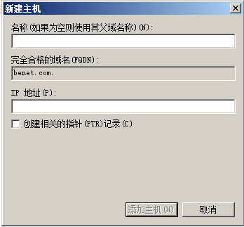 2.9重復(fù)步驟(8)為多個服務(wù)器創(chuàng)建主機記錄。如www.benet.com 、ftp.benet.com 。