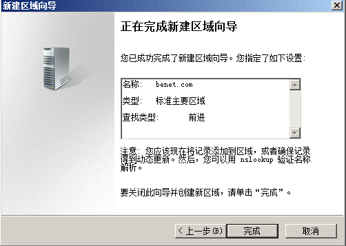 2.3在“區(qū)域名稱”窗口,輸入?yún)^(qū)域名稱“benet.com ”,單擊“下一步”。