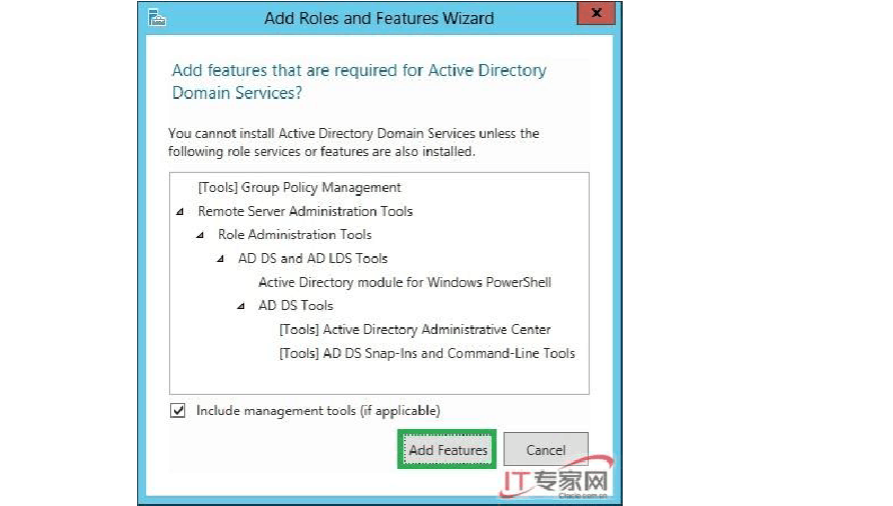 7, 在添加Active Directory域服務所需的功能?“頁,單擊“ 添加室內(nèi)配備。