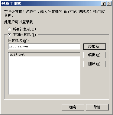 本例設(shè)置用戶wujun 的登錄時間:周一至周五8:00—17:00、登錄的機器:niit_net、niit_server。