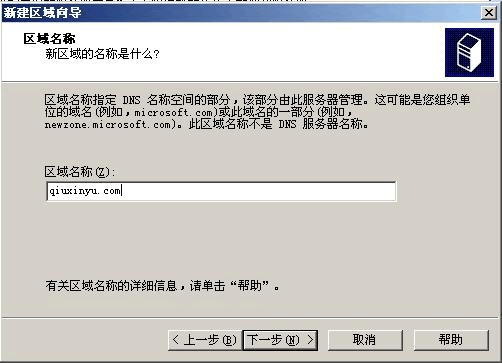 注:在搭建DNS 服務(wù)器時(shí)填寫(xiě)區(qū)域時(shí),可以設(shè)置為郵件域,后面就可以不新建區(qū)域。