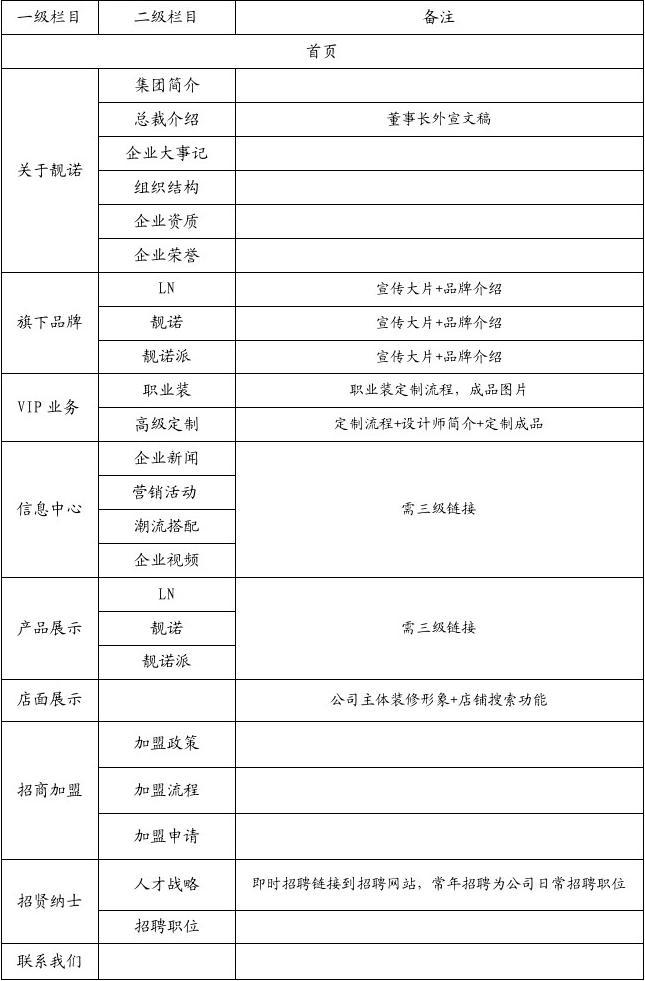 靚諾時裝靚諾公司網(wǎng)站策劃書品宣部第 1 頁 共 9 頁 ,靚諾時裝目 錄第一章 網(wǎng)站概述第二章 網(wǎng)站構(gòu)架第三章 網(wǎng)站頁面設(shè)計第四章 網(wǎng)頁制作各板塊排版要求第一章