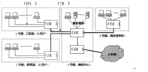 題49表2 50. 已知某單位的網(wǎng)絡(luò)結(jié)構(gòu)如題50圖所示,其中樓間距均大于200米。請(qǐng)從題50表中 選擇合適的設(shè)備或介質(zhì),將其序號(hào)填在題50圖中的編號(hào)處。