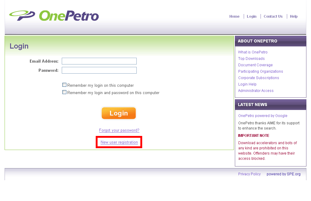 1. 在OnePetro 創(chuàng)建一個(gè)登錄賬戶。