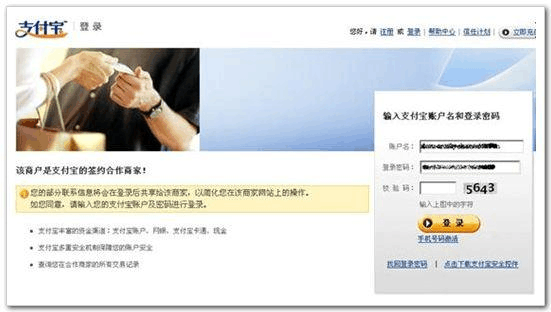 D 、跳轉到進入支付寶網站,輸入支付寶賬戶和登錄密碼