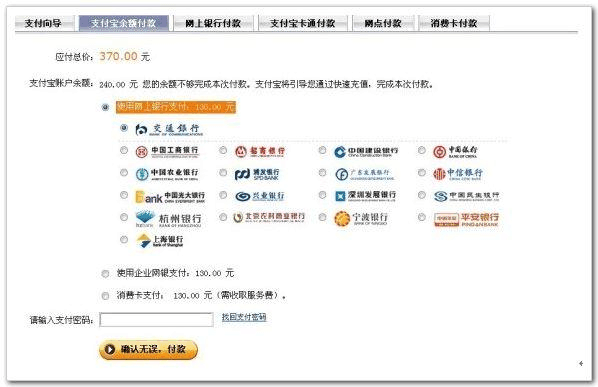 Q :除了支付寶之外,還有別的付款方式嗎?