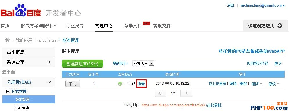 BAE(http://developer.baidu.com/bae),新浪云平臺SAE(http://sae.sina.com.cn/)。4.2.1 百度BAE設(shè)置a. 注冊BAE帳戶并登錄