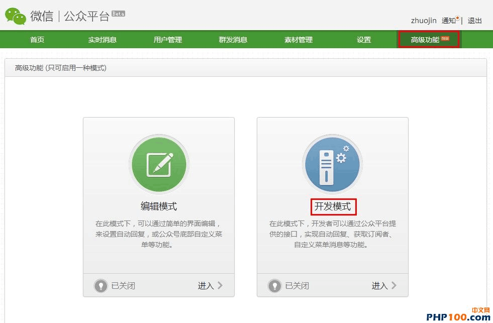 5.1 登錄微信公眾平臺 -> 高能功能 -> 開發(fā)模式
