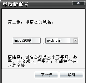 步驟1:點擊注冊一個新帳號,出現(xiàn)如下圖所示:用戶按提示輸入用戶名(用戶名必須是E-MAIL 地址格式,此E-mail 地址格式的用戶名只是為了方便注冊,不須填寫真實的郵箱,只要格式如hello2009@163.com即可)