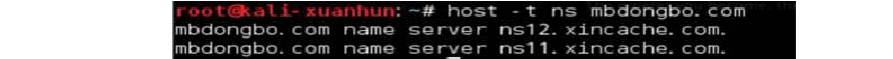 通過“host –t ns mbdongbo.com”得到該域名的兩個服務器為ns12.xincache.com ,ns11.xincache.com 。