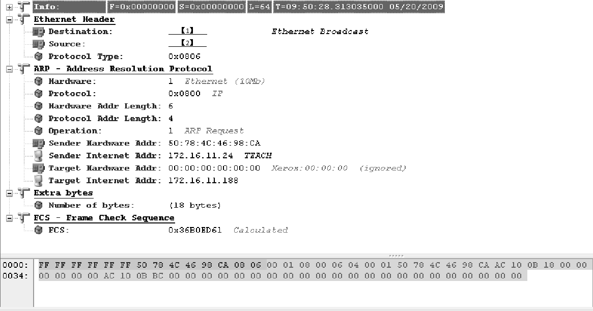 (2) 該數(shù)據(jù)包中的協(xié)議類型“0806”代表該數(shù)據(jù)包使用的協(xié)議是 【4】