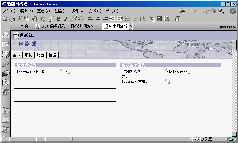 5. 創(chuàng)建外部SMTP 網(wǎng)絡(luò)域文檔。“Internet 網(wǎng)絡(luò)域”是指目標地址,表明什么樣的目標地址