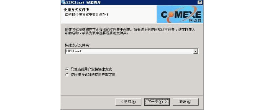 、 在快捷方式文件夾中保留默認下一步;見下圖