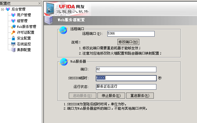 4、遠程通后臺管理—“web 服務(wù)管理”—“重啟服務(wù)”