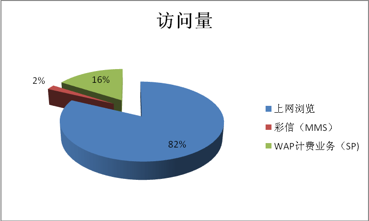 彩信(MMS ) 訪問量 58472349 1418564 比例() 81.8254 1.9917 15.9074 WAP 計費業(yè)務(wù)(SP) 11329348