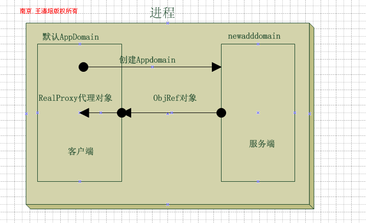 簡(jiǎn)單解釋一下:客戶端通過AppDomain 靜態(tài)方法創(chuàng)建一個(gè)新的應(yīng)用程序域,然后封裝ObjRef 對(duì)象,由于要在客戶端應(yīng)用程序域中調(diào)用新的應(yīng)用程序的功能,設(shè)計(jì)到了跨域的訪問,所以.NET通過ObjRef 保存新的應(yīng)用程序的位置信息以便在客戶端生成代理。當(dāng)ObjRef 到達(dá)客戶端之后,系統(tǒng)進(jìn)行反序列化進(jìn)行動(dòng)態(tài)構(gòu)造真實(shí)代理和透明代理,透明代理是動(dòng)態(tài)創(chuàng)建的,必須繼承自我們客戶端調(diào)用的類型,可能用到了一些動(dòng)態(tài)生成、編譯的技術(shù)。ObjRef 擴(kuò)展自MarShalByRefObject 對(duì)象,專門用來保存服務(wù)端對(duì)象的位置信息,并且是可序列化的。本文出自“深度訓(xùn)練(DotNet專場(chǎng)) ”博客,請(qǐng)務(wù)必保留此出處http://wangqingpei557.blog.51cto.com/1009349/665249