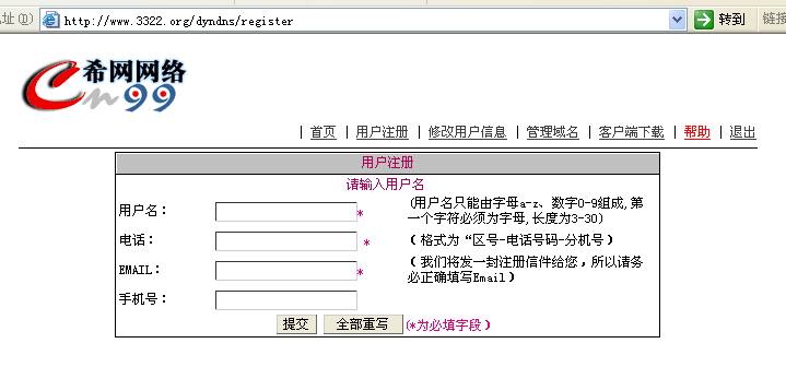 我們在遠程看攝像機的監(jiān)控圖像,就是要通過攝像機所在網(wǎng)絡(luò)的公網(wǎng)IP 來找到它,但是現(xiàn)在所使用的公網(wǎng)IP 都是動態(tài)的,每過16個小時就會變化一次,這樣一來,我們每次遠程看時就需要找一下攝像機所在網(wǎng)絡(luò)的公網(wǎng)IP 是多少,這樣一來就很麻煩,申請域名就是為了彌補這個缺點,現(xiàn)在有很多域名服務(wù)網(wǎng)站,我們隨意選擇一個在上面申請域名,然后下載它提供的客戶端在與攝像機同一局域網(wǎng)內(nèi)的任意一臺電腦上運行就可以,客戶端會自動每過一段時間刷新一下攝像機所在網(wǎng)絡(luò)的公網(wǎng)IP ,如果公網(wǎng)IP 變了,它就會自動將新的IP 與你所申請的域名進行綁定,這樣一來,不管你什么時候打開域名,都是打開的你攝像機正在使用的IP 。下面以稀網(wǎng)域名申請舉個例子: