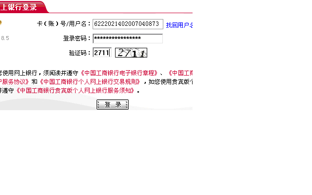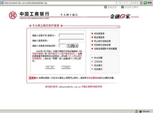 3)登錄網(wǎng)上銀行進(jìn)行查詢銀行帳戶的資金情況。在登錄頁面查看瀏覽器左下角(狀態(tài)欄)的頁面安全狀態(tài)(見下圖7);