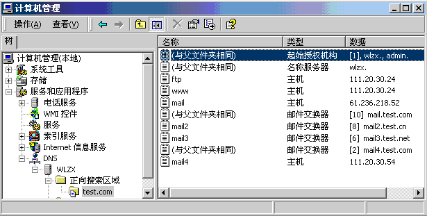 該DNS 服務(wù)器配置的記錄如圖2-6所示。
