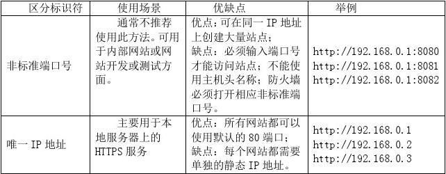 同一臺計算機、同一個IP 地址,采用的端口號不同,也可以標識不同的虛擬網(wǎng)站。如果用戶使用非標準的端口號來標識網(wǎng)站,則用戶無法通過標準名或URL 來訪問站點。另外,用戶必須知道指派給網(wǎng)站的非標準端口號,訪問的格式為:http://{服務器名}:端口號,使用時比較麻煩。