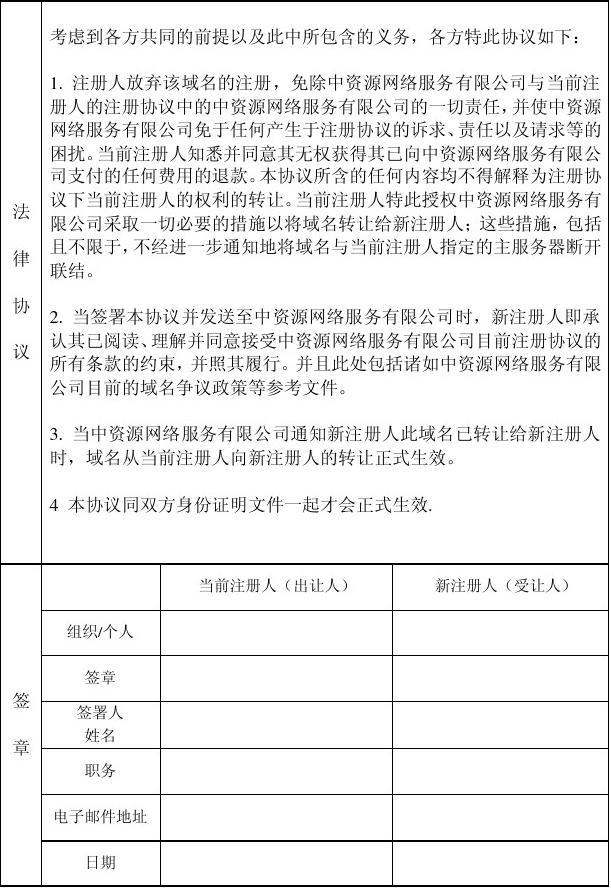 域 名 轉(zhuǎn) 讓 協(xié) 議 - 中資源